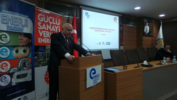 Enerji Verimliliği Derneği tarafından Organize Sanayi Bölgelerinde hayata geçirilen ve işletmelerin, enerji verimliliğini sağlayacak uygun projelerin ortaya konulması için, enerji etütlerinin yapılması, enerji tasarrufu açısından enerji verimliliğinin değerlendirilmesi, enerji tasarruf odaklarının belirlenmesi amacını taşıyan "Enerji Verimli Sanayi" Projesi kapsamındaki toplantıda, Enerji Verimliliği Derneği Bartın Şube Başkanı Mehmet Kemik yaptığı açılış konuşmasında "Enerji Verimliliği Derneği olarak; ülkemizi kuzeyden güneye, doğudan batıya dolaşarak enerji verimliliği konusunda toplum bilincini yaygınlaştırmaya çalışıyoruz. Bu toplumsal bilincin her kesimde oluşabilmesi için ise farklı farklı projelere imza atıyoruz. Böylelikle, 2023 yılına kadar 150 milyar lira kaynak oluşturmayı hedefliyoruz."dedi.